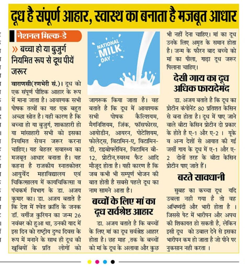दूध है सम्पूर्ण आहार : राष्ट्रीय दुग्ध दिवस पर डॉ अजय गया से वार्ता